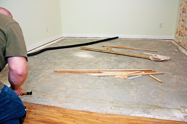 This is what the room looked like before the floors (well, and before the books and curtains and light and stuffs):